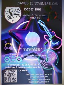 L’US Arches Archettes organise son bal le samedi 15 novembre 2025. Toutes les informations dans l’affiche.